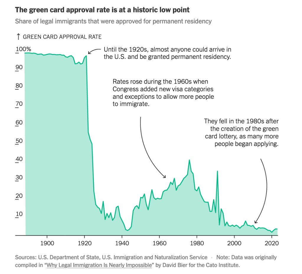 Why don’t immigrants just “stand in line” like my grandpa did? The answer is pretty obvious. The immigration system is utterly shattered. As one immigration lawyer recently wrote me, there are currently some “4 million removal cases now pending in front of 650 Immigration Judges.” If each case were a sheet of paper, the stack would be “almost the height of the Empire State Building.” Back in 2021, Judge Dana Leigh Marks said, “In essence, we are holding death penalty cases in a traffic court setting.” And that was when there were only 1.5 million pending cases.